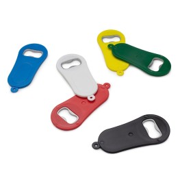 Abridor de garrafa em metal com acabamento em bambu e imã.