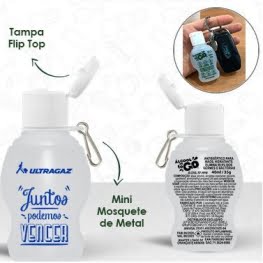 Álcool Gel é composto por álcool 70° INPM que combate 99,9% dos germes durante a higienização das mãos. É hidratante e ideal para você! Embalagem portátil de 40ml, personalizada com a logo de sua empresa. Fabricado com qualidade e segurança certificadas, conforme regulamentação da ANVISA.