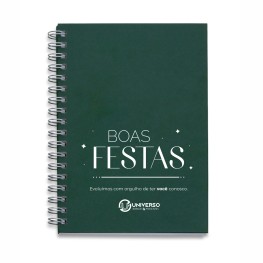 Caderno de couro sintético, marcador de página em cetim e fita elástica para fechar. Contém aproximadamente 78 folhas amareladas sem pauta.
