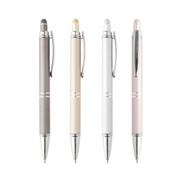 Esferográfica em alumínio com mecanismo twist, ponteira touch e clipe. Até 2 km de escrita. Incluso embalagem de veludo.