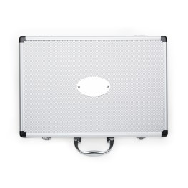 Kit petisco/caipirinha composto por tábua, socador e colher em bambu; petisqueira com base em bambu e 5 potes; faca 4″ em madeira/inox; coqueteleira e 4 palitos em inox.