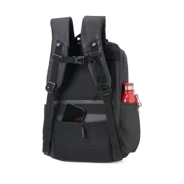 Mochila de 22L em poliuretano impermeável, com compartimento acolchoado para notebook de até 17”. Possui cadeado numérico TSA, dois bolsos laterais, adaptador USB e alças com revestimento espumado para mais conforto.