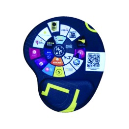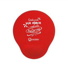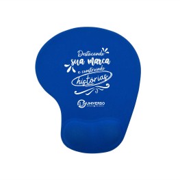 Mouse pad ergonômico com apoio em espuma, feito em borracha, espuma e tecido. Personalizável sem limite de cores.