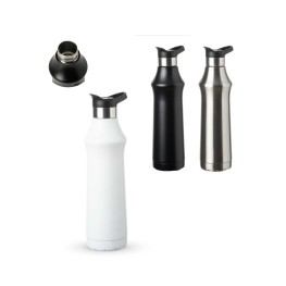 Squeeze em bambu e aço inox, com parede dupla isolada a vácuo e infusor para chá (térmico). Preserva as bebidas quentes por 8 horas e as bebidas frias por 24 horas. Capacidade até 430 mL. Certificação EU Food Grade. Fornecido em caixa.