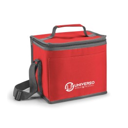 Sacola térmica em 600D com zíper e compartimento exterior aberto forrado que contém um bolso frontal. Ideal para levar para a praia. Alças em webbing com 55 cm e capacidade até 9 L.