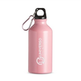 Squeeze metálica de aço inox 600ml com tampa rosqueável plástica e bico transparente de acionamento manual. Acompanha alça de nylon para transporte. Não é um modelo térmico.