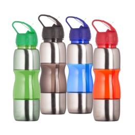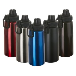 Squeeze metálica inox com capacidade de 700ml com pintura colorida e detalhes em prata. Possui tampa rosqueável e acompanha chaveiro mosquetão. Não é um modelo térmico.